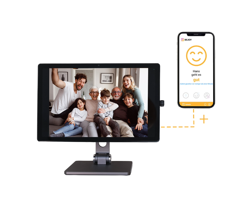 Mit BEJOY kann jeder aus der Familie Fotos und Nachrichten auf das Tablet an Oma senden. Die Fotos werden auf dem Tablet automatisch nacheinander angezeigt, erinnern an gemeinsame Momente und schaffen Nähe, ortsunabhängig.
